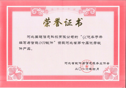 | 2016年4月15日,我公司董事長(zhǎng)劉占查、綜合事業(yè)部主任尚躍華參加河北省軟件與信息服務(wù)業(yè)協(xié)會(huì)四屆三次理事會(huì)議暨四屆三次常務(wù)理事會(huì)議。會(huì)上協(xié)會(huì)理事長(zhǎng)柳延華做了2015年度協(xié)會(huì)工作總結(jié)及2016年度工作計(jì)劃重要講話,公布了第七屆河北省軟件與信息服務(wù)業(yè)“十佳”及優(yōu)秀企業(yè)、產(chǎn)品等獲獎(jiǎng)名單。我公司被評(píng)為河北省第七屆優(yōu)秀軟件企業(yè),公司研發(fā)的“GC汽車手冊(cè)編寫(xiě)與智能DTP軟件”被評(píng)為河北省第七屆優(yōu)秀軟件產(chǎn)品。