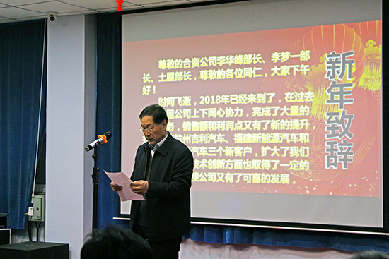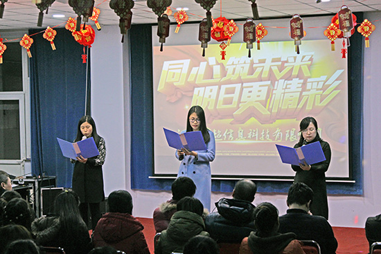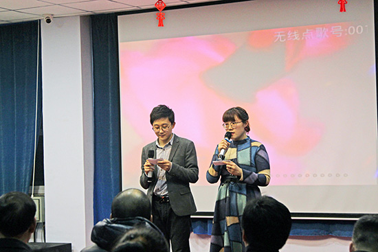 | 告別難忘的2017年,公司闊步走入充滿生機的2018年。新春佳節(jié)即將來臨之際,1月27日下午,公司舉辦“同心筑未來,明日更精彩”迎新春年會暨酒會,“瑞雪翩翩兆稔景,犬蹄朵朵報春花”,年會開始前,一場意外的驚喜----晶瑩潔白的瑞雪紛紛揚揚從天而降,似乎上天也來給公司的活動助興。與會嘉賓有:合資公司北京分公司的李華峰部長、李夢一部長土屋部長、袁川室長、辛集市總商會謝忠生秘書長、汽車專家李虎臣老師等。 年會節(jié)目豐富多彩,員工表演了歌曲、集體舞蹈、詩朗誦、擲杯舞、手語舞、大合唱等節(jié)目,深情的歌曲表達了員工的心聲,充滿活力的舞姿充分表現(xiàn)出了年輕人的活力與激情,飽含豐富感情的詩朗誦和大合唱表達了員工對國超大集體的熱愛與奮發(fā)向上的決心,絕活“擲杯舞”表演時間雖短,但是其嫻熟、流暢的舞姿深深吸引了觀眾的眼球。年會上表演的節(jié)目均由公司員工自編自導自演,給在場觀眾帶來了一場精彩絕倫的視覺盛宴,與會嘉賓亦即興表演了精彩的節(jié)目,年會特約《超睿智學》10歲的小嘉賓和指導老師表演了令人眼界大開的節(jié)目“最強大腦”,現(xiàn)場表演了神奇的“蒙眼讀書”,整個會場充滿了熱情洋溢的節(jié)日氣氛。整個年會聯(lián)歡和諧、溫馨,富有激情。這是一場歡樂的盛會,不僅展示了全體員工積極向上的進取風貌,也展現(xiàn)了公司充滿活力的企業(yè)文化氛圍。 本次活動,每個人都身兼多職,但忙而不亂,主持人的完美搭詞、工作人員的有條不紊、參演員工的認真敬業(yè)使本次年會取得了圓滿的成功。下午5時30分共進酒宴,大家歡聲笑語共慶佳節(jié),舉杯暢飲展望未來,共同迎接充滿生機和希望的2018年。