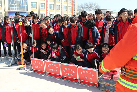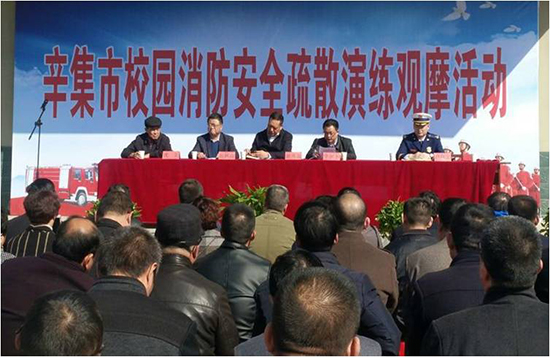 | “隱患顯于明火,防范勝于救災(zāi)”為提高師生的消防安全意識,培養(yǎng)全校工作人員在遇到火災(zāi)等突發(fā)事件的應(yīng)變能力,掌握安全逃生與疏散技巧。結(jié)合我市實際情況,2019年3月14日,特舉辦“消防安全進校園”的一次消防演習(xí)活動。此活動由辛集市教育局主辦,新壘頭鎮(zhèn)中學(xué)及河北國超消防設(shè)備科技有限公司承辦,希望普及消防知識,防患于未來。 參加本次活動的有辛集市教育局黃興君局長、趙樹山副局長,應(yīng)急事務(wù)管理局辛彥卜局長,辛集市消防大隊盧保龍大隊長,消防專家沈文教授。還有各學(xué)區(qū)總校長、直屬學(xué)校和民辦學(xué)校校長;各學(xué)區(qū)、直屬學(xué)校、民辦學(xué)校主管安全副校長;各初中校長、主管安全校長;全市完小校長、主管安全副校長共計230余人及新壘頭鎮(zhèn)中學(xué)的1100多名師生。