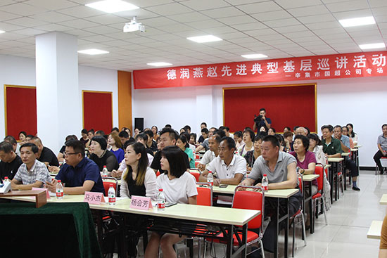 | 2019年6月25日上午,“善行河北 德潤燕趙”先進典型基層巡講活動 辛集市國超公司專場在我公司舉辦。本次活動由河北省文明辦主辦,辛集市文明辦、鹿城辦事處承辦,地點在我公司一樓多功能會議廳。出席活動的領(lǐng)導(dǎo)有:辛集市文明辦主任曹磊、鹿城辦事處主任王書軍等。我公司總經(jīng)理曹艷爽、工會主席尚躍華帶領(lǐng)公司員工代表、鹿城辦事處代表共計100余人聆聽了報告。 鹿城辦事處主任王書軍指出,道德模范、身邊好人等先進典型是有形的正能量,是鮮活的價值觀。各單位領(lǐng)導(dǎo)和同志要以他們?yōu)榘駱,向道德模范學(xué)習,進一步推動文明素質(zhì)的整體提升,人人參與創(chuàng)建、人人支持創(chuàng)建,為全市精神文明建設(shè)貢獻力量。 活動現(xiàn)場,中國好人、河北好人、河北省最美退伍兵、中國人民銀行衡水市中心支行科員郝宏銀,堅持42年幫老人、執(zhí)勤值班官兵和住校孩子們免費理發(fā)、對患絕癥卻無錢看病的戰(zhàn)友提供經(jīng)濟援助!瓣柟馀ⅰ睏顣迹瑥男【蛽撈鹫疹櫲胰说闹負,她沒有向命運低頭,用不懈的拼搏和努力追逐著夢想,換來了人生的一縷陽光。河北省優(yōu)秀志愿者、邢臺公益服務(wù)協(xié)會秘書長、邢臺市林璋茶葉貿(mào)易有限公司負責人韓林璋,組建規(guī)范助學(xué)團隊、策劃“揚帆護航~陽光助學(xué)”“笑臉計劃”等志愿服務(wù)活動,致力于公益事業(yè)。辛集市馬長青中醫(yī)診所中藥藥劑師馬小杰,多次組織參與志愿行動、資助貧困家庭孩子上學(xué)、聯(lián)系外國友人連續(xù)兩年資助18個因大病返貧家庭。他們用質(zhì)樸無華的語言、真摯細膩的感情進行了講述,一個個溫暖故事、一件件平凡善舉令在場的聽眾深受感動,贏得了現(xiàn)場觀眾陣陣掌聲。大家表示,一定要學(xué)習他們對于公益活動的執(zhí)著、堅守和情懷,關(guān)心社會,奉獻愛心。巡講會獲得圓滿成功。
