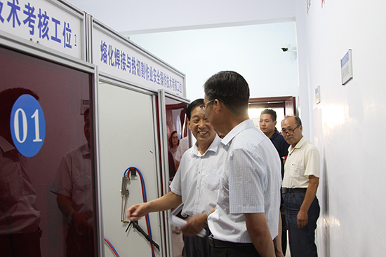 | 2019年7月4日上午,市委書記王現(xiàn)坤由市委常委、市委辦主任范玉柱陪同調(diào)研辛集市應(yīng)急管理局國超特種作業(yè)考試點。董事長劉占查、國超培訓學校校長高樹勛帶領(lǐng)領(lǐng)導們參觀了二樓國超特種作業(yè)考試點候考室、理論考場、公共科目考場、焊接與熱切割作業(yè)實操考場、高壓電工作業(yè)實操考場、低壓電工實操考場。 王現(xiàn)坤書記對特種作業(yè)人員實施理論和實操技能培訓及考核的方式方法進行了詳細了解,董事長劉占查、國超培訓學校校長高樹勛從考試點軟硬件設(shè)施建設(shè)管理情況、2019年上半年培訓考試運行情況、考生來源與培訓管理等方面進行了詳細匯報。 王現(xiàn)坤書記對辛集市應(yīng)急管理局國超特種作業(yè)考試點2019年上半年的運營情況表示肯定。該考試點于2019年1月25日正式投入運行,通過實際操作、仿真模擬操作等方式,對考生進行安全用具使用、安全操作技術(shù)、作業(yè)現(xiàn)場安全隱患排除、作業(yè)現(xiàn)場應(yīng)急處置等考核,使辛集市特種作業(yè)人員(電工、焊工等)免除了去外地考試之苦,實現(xiàn)了培訓、理論及實操考試一體化,為廣大特種作業(yè)人員新辦、復審及換證提供了極大方便,為企業(yè)的安全生產(chǎn)提供了有力的支撐。