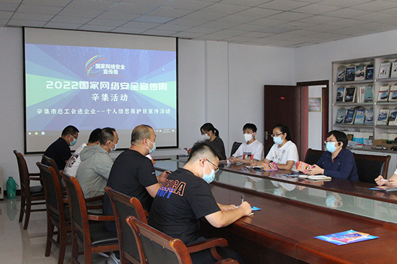 | 為進一步推動網絡安全建設,加強網絡安全宣傳,增強職工網絡安全意識,提升職工網絡安全防范意識和技能,2022年9月7日下午,辛集市總工會及辛集鎮(zhèn)工會領導一行來我公司,開展了以“網絡安全為人民,網絡安全靠人民”為主題的“個人信息保護日”入企宣傳活動。與會領導針對網絡安全進行了集中宣講。會上,發(fā)放了個人信息保護宣傳彩頁,并講解了如何防范個人信息泄露以及個人信息泄露的危害等網絡安全保護常識。 大數據時代,個人信息直接關系到每個公民的隱私、財產和生命安全,也事關社會穩(wěn)定和國家安全。通過宣傳,公司職工進一步了解了保護個人信息安全、共筑網絡安全防線的重要意義,充分認識到保護個人信息的重要性。與會職工一致認為,今后一定要加強網絡安全法律法規(guī)的學習,培養(yǎng)自覺保護個人信息的良好習慣,減少個人信息泄露的風險和可能,保護個人隱私和生命財產的安全。
