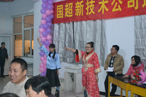 | 2013年12月27日晚,我公司一樓大廳燈光璀璨,笑語滿堂,2014年元旦聯(lián)歡晚會在這里隆重舉行。我公司董事長兼董事長劉占查攜全體員工以及有關(guān)公司領(lǐng)導(dǎo)歡聚一堂,喜迎元旦迎新年。 晚會在熱烈、激情的歌曲《國超之歌》中拉開帷幕。晚會有猜謎游戲、中外文歌曲、音樂劇、抽獎(jiǎng)等節(jié)目,展現(xiàn)了國超人的青春活力和對公司的熱愛之情。晚會時(shí)代氣息鮮明,企業(yè)文化特色濃郁,多角度,多視點(diǎn)的營造出昂揚(yáng)振奮、歡樂祥和的節(jié)日氣氛。本次晚會的節(jié)目都是公司員工自編、自導(dǎo)、自演的,迎得了大家的一致好評,員工們的精彩表演贏得滿場陣陣熱烈掌聲;厥走^去,我們銳意進(jìn)取,不斷求索;展望未來,我們勇往直前,再創(chuàng)輝煌。在新的一年里,國超公司必將繼往開來、與時(shí)俱進(jìn),創(chuàng)造更加燦爛輝煌的明天。