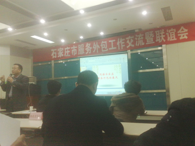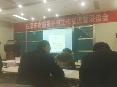 2012年1月17日,石家莊市商務(wù)局在市高新區(qū)西區(qū)金石工業(yè)園舉辦全市服務(wù)外包工作交流暨聯(lián)誼會(huì)。出席會(huì)議的嘉賓有:省外匯局、市委宣傳部、市財(cái)政局、市工信局、市科技局、市教育局、市文廣新局、市人社局、市商務(wù)局及市內(nèi)五區(qū)商務(wù)局領(lǐng)導(dǎo)。作為市重點(diǎn)服務(wù)外包企業(yè)代表,我公司董事長(zhǎng)劉占查出席了會(huì)議并重點(diǎn)發(fā)言。