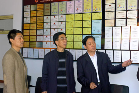 | 2012年4月13日上午,石家莊市工業(yè)和信息化局副局長張慶緒、人才處副處長李穎民、王剛,由辛集市工業(yè)和信息化局長王忠禮、副局長蘇化楹、民營管理辦公室主任劉義強(qiáng)陪同,來我公司進(jìn)行調(diào)研。工業(yè)和信息化局領(lǐng)導(dǎo)聽取了公司董事長劉占查就國超公司和國超職業(yè)培訓(xùn)學(xué)校人才培訓(xùn)情況的匯報,對公司及學(xué)校近年來在各方面取得的成績予以充分肯定,并對開展中小企業(yè)人才培訓(xùn)規(guī)劃及設(shè)想提出了寶貴的建議。